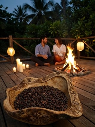 - Cacao & fire ceremonies, sound healing, journaling, and mindful walks