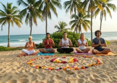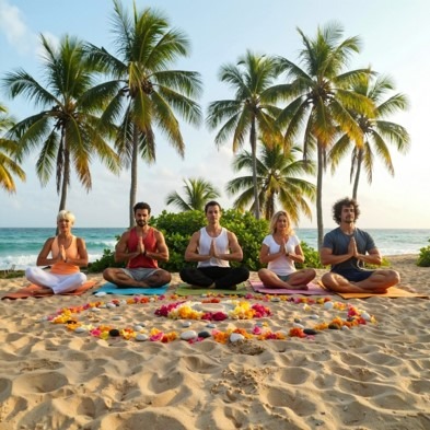 - Beach meditation and evening relaxation rituals