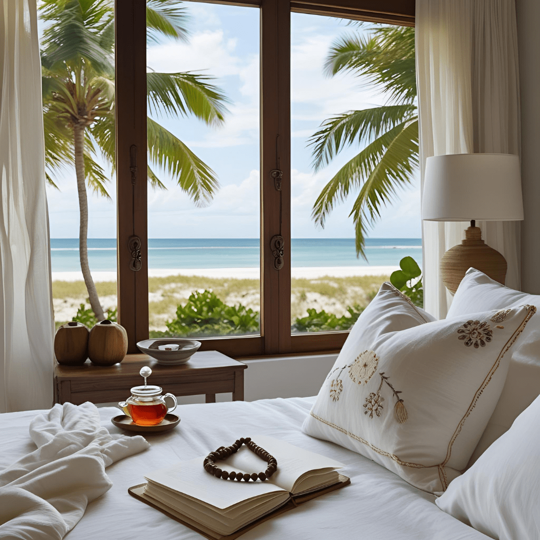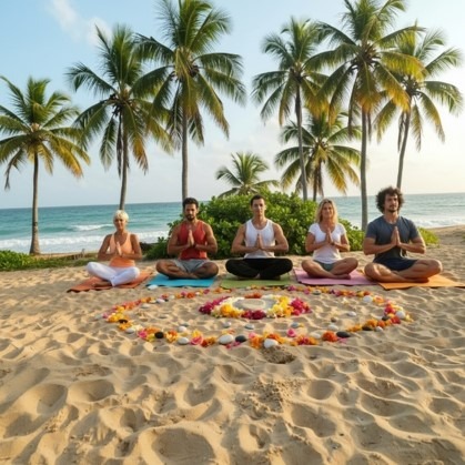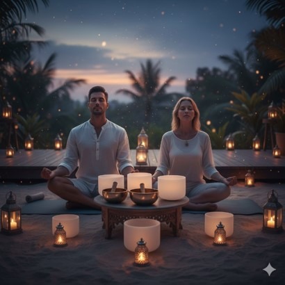- Beach meditation and evening relaxation rituals