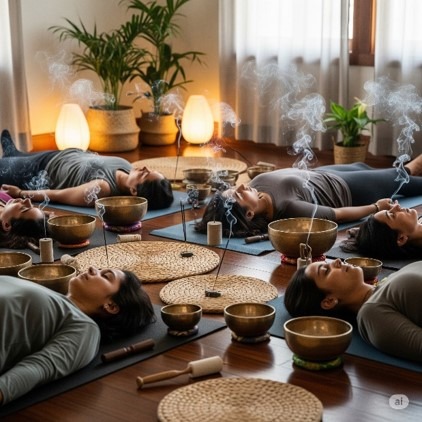 - One 30-minute Ayurvedic massage (complimentary), Sound Bath Meditation & Healing session, Tratak (candle gazing) guided practice, Mandala creation, bonding circles, and evening rituals, Access to yoga shala, steam room, filtered water, and herbal teas